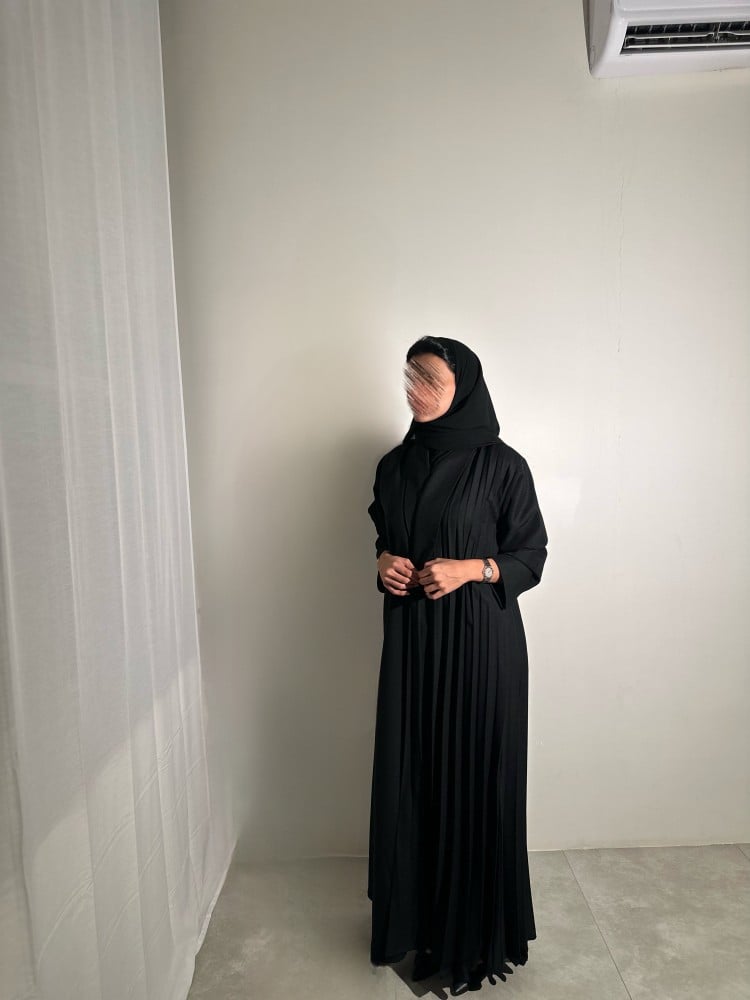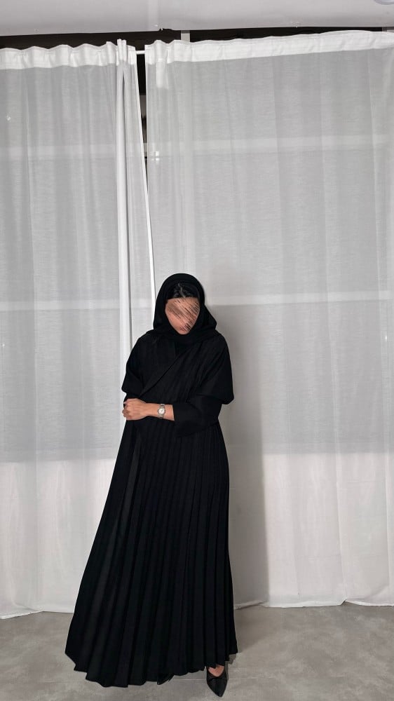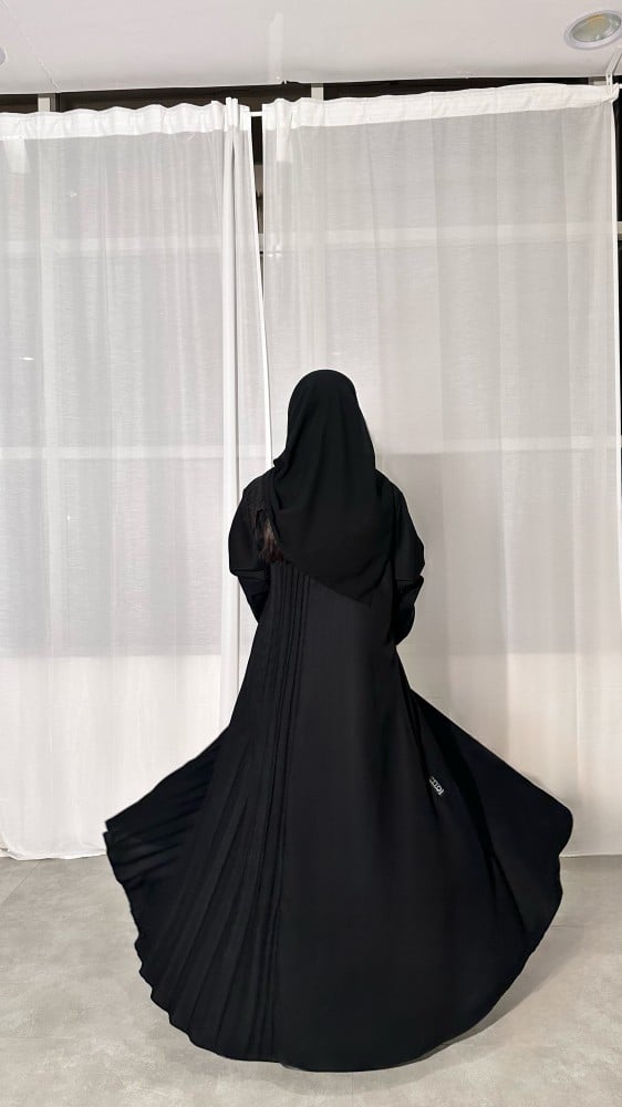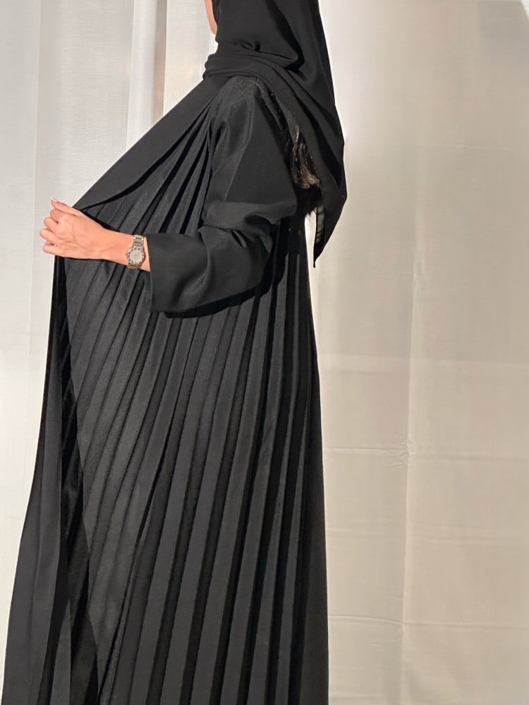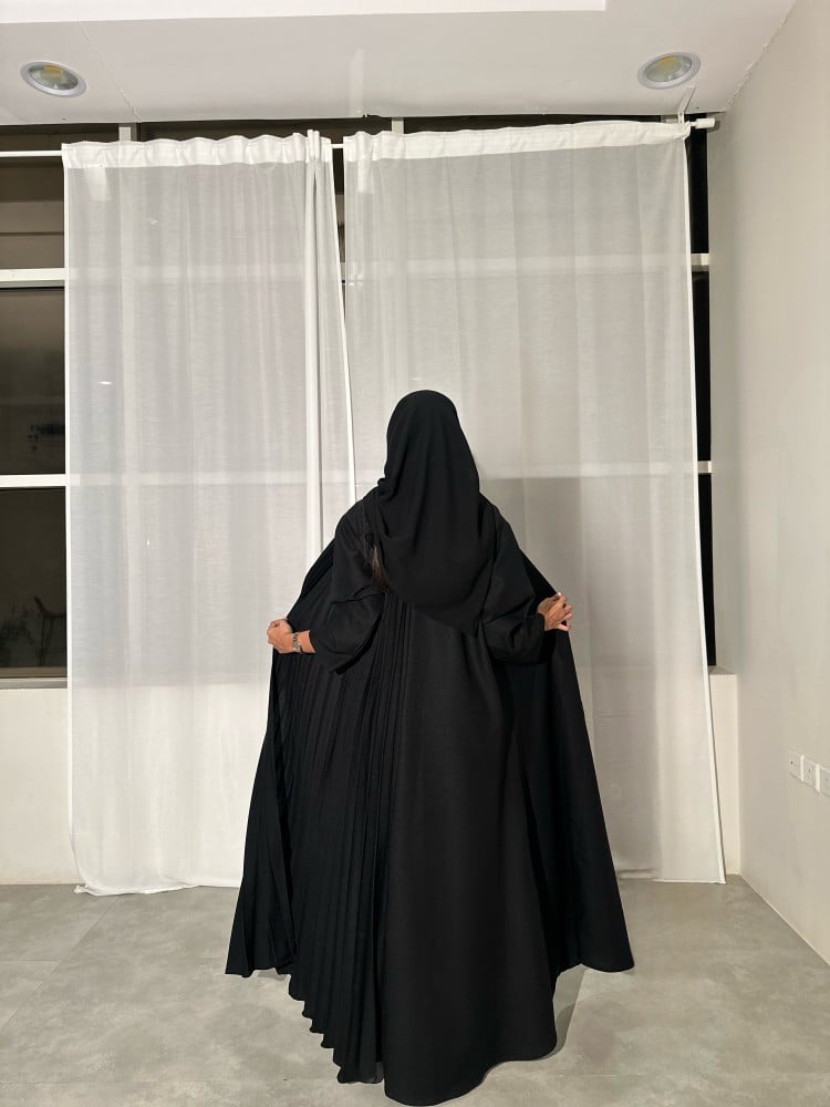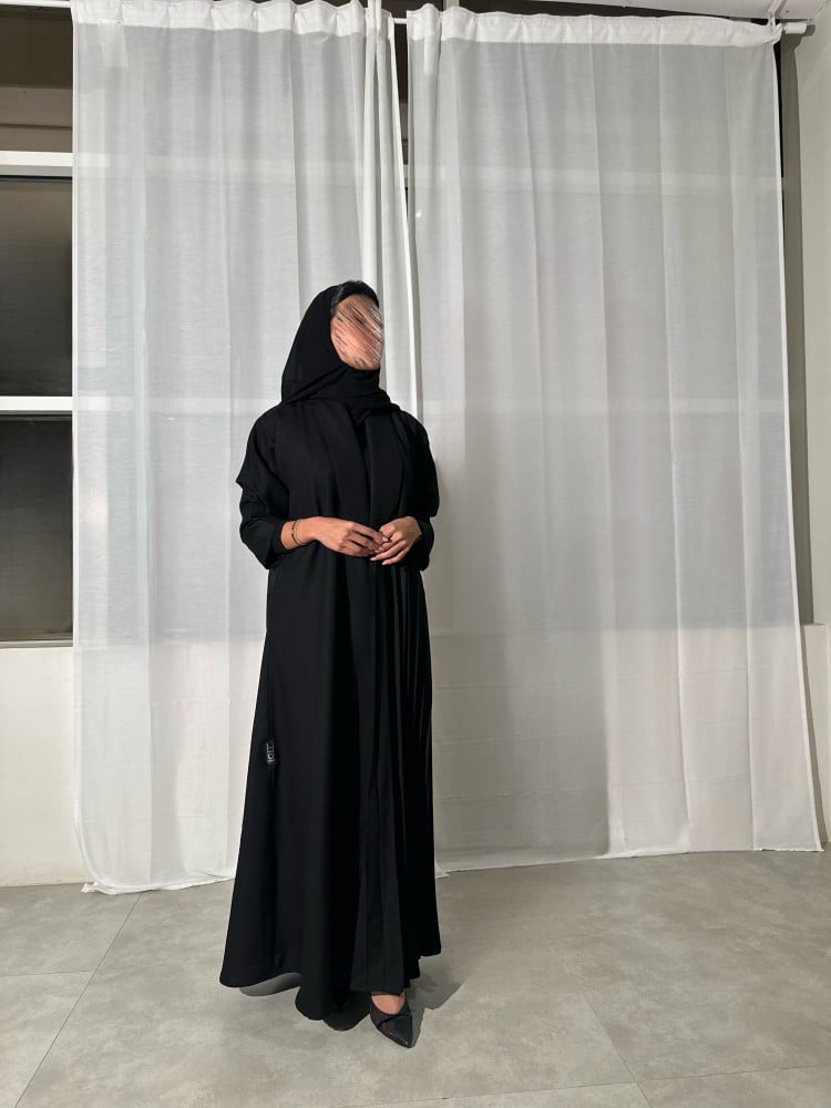 عباية كتان أسود مع كتان اسود مكسر
