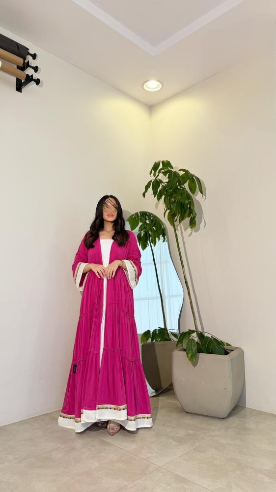 عباية قطن بيكيه طبقات كلوش فوشي مع كلفة تطريز ا