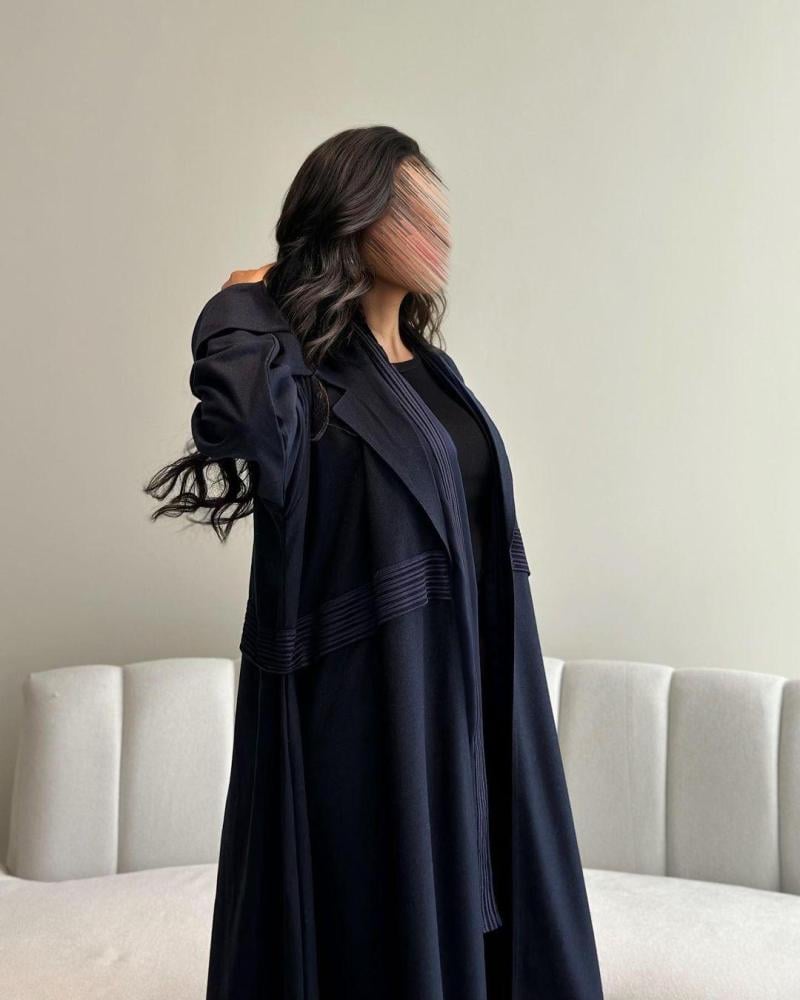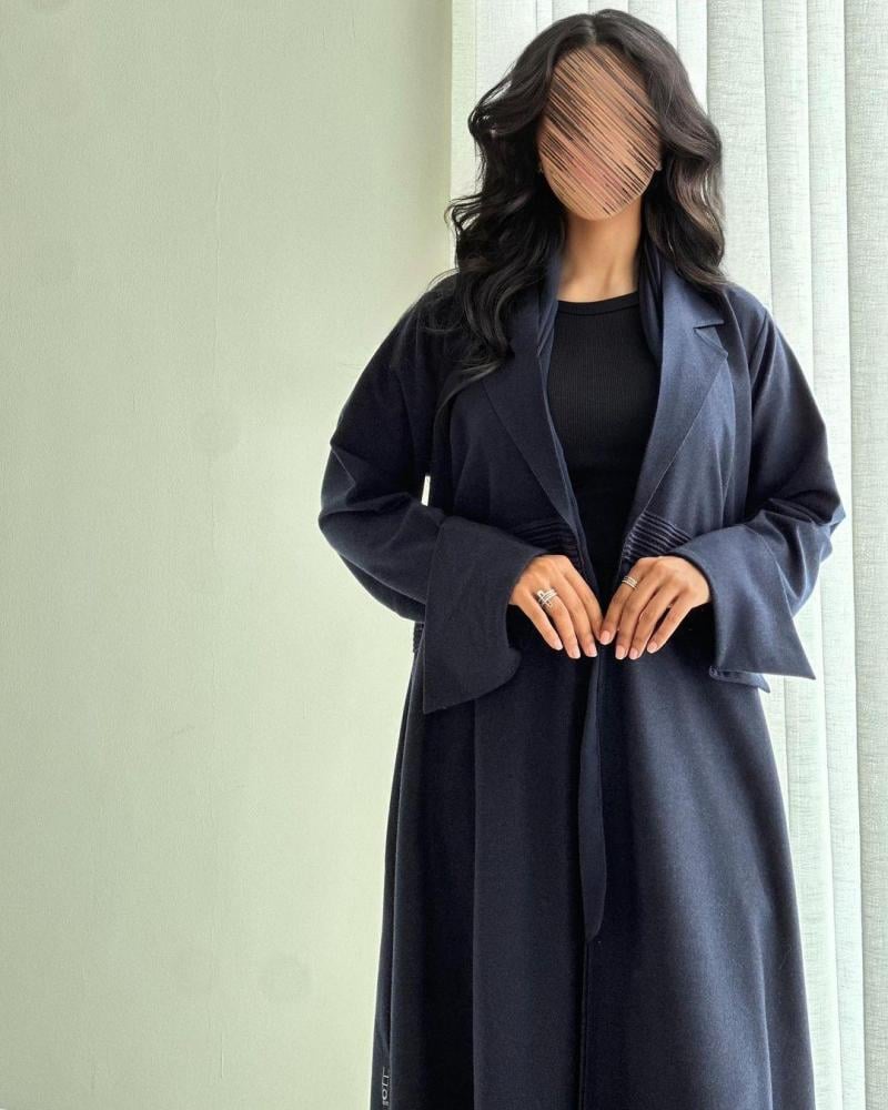 عباية بليزر كتان كحلي مع كلفة (مع امكانية اختيار اللون الاسود )